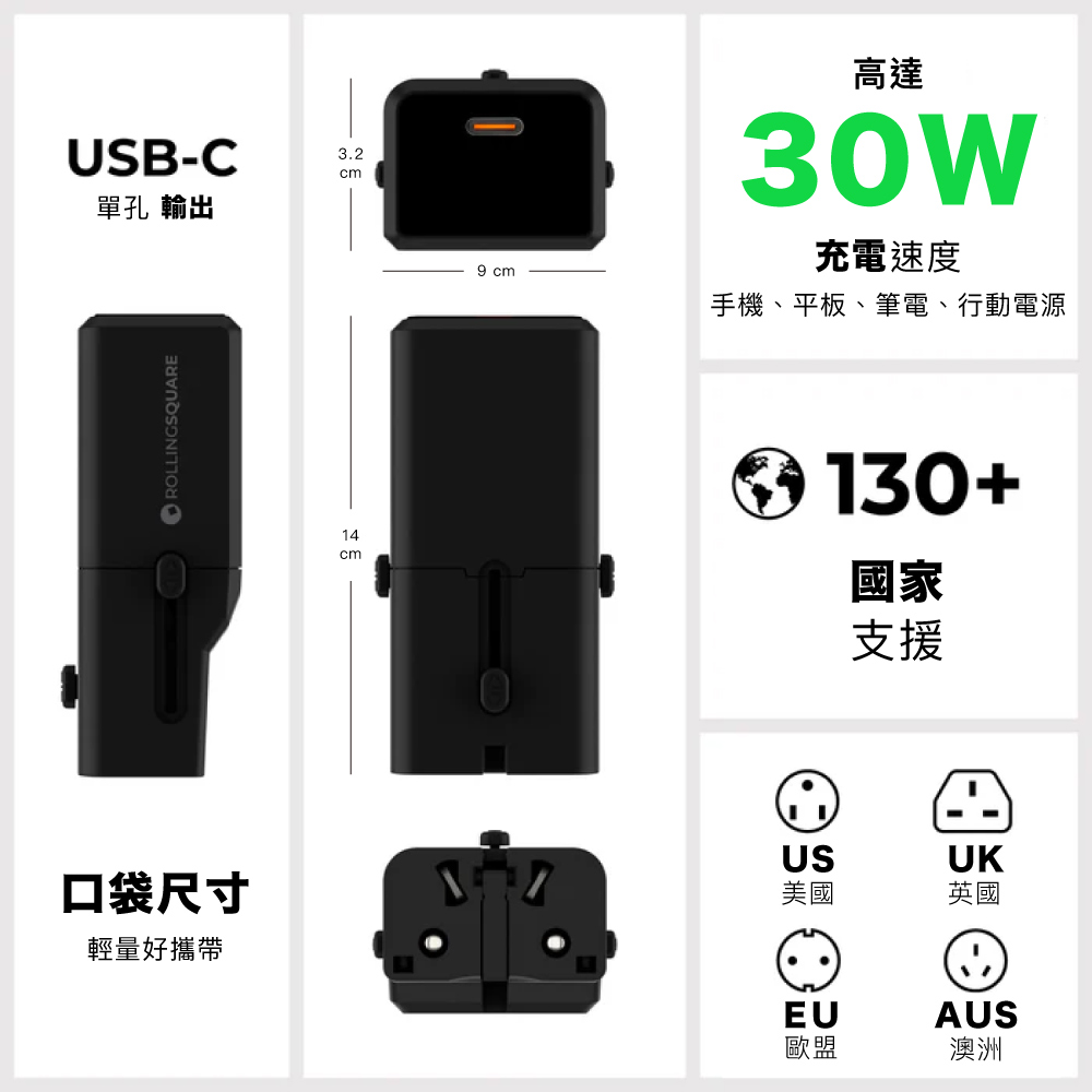 ROLLING SQUARE|30W 旅行迷你萬國轉接頭(單孔)